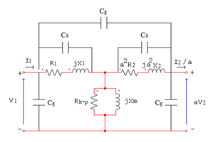 Ante altas frecuencias se consideran, además de las otras capacitancias, los efectos capacitivos entre alta tensión y baja tensión (figura 1).