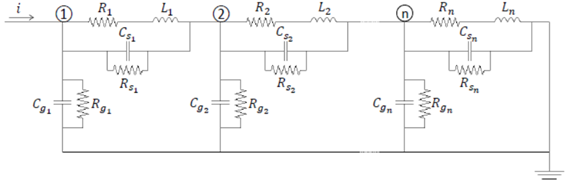 Se considera como el más apropiado, para describir el comportamiento transitorio del devanado, porque permite analizar y determinar la ubicación de los posibles fallos del aislamiento, en las espiras y discos, de una forma rápida y simple [6]. La validez de un modelo de parámetros concentrados (figura 2), se encuentra limitada por la longitud correcta de cada segmento. Para un estudio transitorio en el orden de cientos de kilohertz un segmento por bobina puede ser suficiente, mientras que para un estudio en el orden de los megahertz, podrá ser necesario considerar un segmento por vuelta del devanado. Esto conlleva a la solución de sistemas de gran tamaño y, en consecuencia, la simulación puede ser muy costosa. La solución de este tipo de modelos puede llevarse a cabo mediante herramientas de simulación de transitorios electromagnéticos o por medio de sus correspondientes ecuaciones de estado.