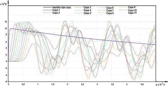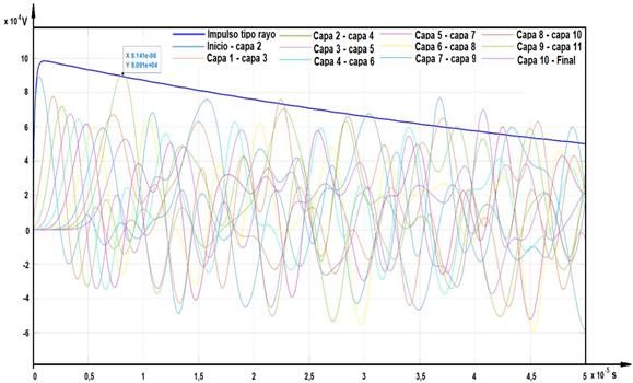 Con el modelo empleado para la simulación se tiene que ser capaz de obtener la distribución de tensión de impulso de rayo en los devanados del transformador, cuyo valor máximo es el Nivel Básico de Aislamiento (BIL, por sus siglas en inglés), del mismo, a partir del ensayo de impulso a que se someten los transformadores como prueba eléctrica.