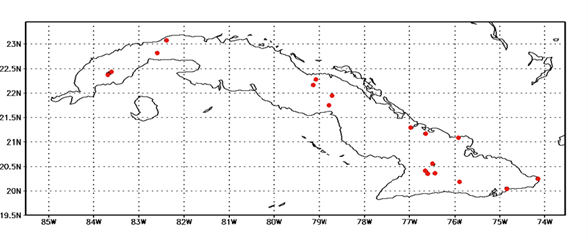A detailed description of the system, as well as a preliminary evaluation has been published in a previous work.With the establishment of an information exchange system between the DNC and the INSMET, which allows the automatic transmission of daily wind, solar radiation and power generation, data, as well as other meteorological variables from the wind and photovoltaic farms to the INSMET and the respective forecasts from INSMET to the DNC, a series of data and forecasts of more than 3years has accumulated, which allows an evaluation of the performance of the forecast system. Nominally there is a list of 69 PV parks in operation, but in practice, due to problems in the quality and consistency of the reports, the daily number of parks for which the forecast is made ranges between 25 and 50.