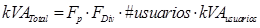 Este es un elemento a tener muy en cuenta para evitar que el proyecto caduque antes de lo previsto y necesite una repotenciación que conllevaría gastos adicionales e insatisfacciones a los pobladores. El perfil de carga característico de una comunidad rural en Cuba con 32 viviendas, una vez implementada una micro red, es equivalente a la forma del perfil de carga del SEN, comportamiento lógico si se tiene en cuenta que en Cuba el 72% de la demanda eléctrica corresponde al sector residencial. Para el cálculo de las potencias por usuario podrá utilizarse el procedimiento establecido en la NTC 2050, que se muestra en la ecuación (1). [8]. Mientras que la estimación de la demanda por usuario se realizará a partir de la energía promedio por usuario en Cuba que es de 6.53 kWh/día.