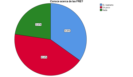 Un elemento imprescindible en este tipo de sistemas y entornos es identificar en las comunidades aquellos pobladores que pudieran encargarse de la operación y mantenimiento de los sistemas de micro redes. Así entonces, en la encuesta se evidenció que, un 22.67% de la población no tiene ningún tipo de conocimiento sobre las FRE o las tecnologías que componen las micro redes, como puede apreciarse en la figura 3, mientras que un 42.44% afirma conocer un poco de estas tecnologías.