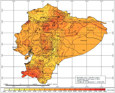 Como respuesta ante lo anterior mencionado, los SFVs han logrado diversos proyectos en hogares, instituciones, comunidades y como centrales eléctricas, ejemplos como la institución CENTROSUR en Cuenca y centrales como Brineforcorp en Manabí son prueba de ello [5, 6].Ecuador, por su posición geográfica, es un país con niveles considerables de irradiación solar horizontal (IGH) llegando a rangos entre 3,0-6,5 kWh/m2/día en terriotorio continental, con mayor incidencia en la cordillera de los Andes así como se muestra en la figura 1.