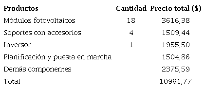 Con la resolución de la ecuación (1) y (2), el SFVCR consiguió la potencia de 7,15 kWp con un número de paneles estimado en 17,65; al necesitar el proyecto más de 17 paneles se optó por redondear a 18 el número de elementos elevando la potencia a 7,29 kWp.