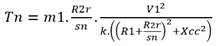 Se presentan también las ecuaciones 1, 2, 3, 4, 5 para el cálculo del deslizamiento para carga nominal (sn), torque nominal (Tn), deslizamiento para torque máximo (sTm) y valor de resistencia a agregar en el rotor para hacer el torque en el arranque máximo (Radarr) y los valores de velocidad final del motor así como corriente de estabilización en pu.