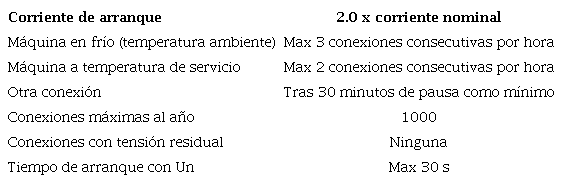 Si se aseguran arranques con las resistencias recomendadas en el presente trabajo, que limitan la corriente de arranque por debajo de 2 pu y en ocasiones alrededor de 1pu, no sería necesario limitar la cantidad de arranques en una hora, pues para estas condiciones el motor, de comportarse según las modelaciones, prácticamente utiliza muy poca capacidad térmica en el proceso de arranque. No obstante, analizando la posibilidad de que no se asegure la resistencia adecuada en el arranque y este proceso demore más tiempo que lo modelado es conveniente limitar la cantidad de arranques en frío a tres en una hora, pues son valores típicos que se utilizan como recomendación de los fabricantes Siemens de motores de media tensión, como se puede ver en los manuales de los motores Siemens de media tensión de 300 y 240 kW comprados recientemente por la Fábrica de cementos del Mariel.