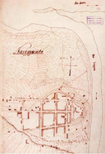 En concordancia con lo expuesto anteriormente, traemos a colación el caso del fuerte de Nacimiento, fortificación española también ubicada en la región del Biobío (Fig. 1). Fue fundada en 1604 por el entonces gobernador Alonso de Ribera como parte de una política de establecimientos militares de Plazas Fuertes, ubicadas a lo largo del río Biobío para contener las asonadas indígenas, dando origen por el norte a las denominadas Plazas de la Frontera.