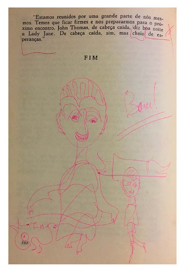 Na página em branco que se segue ao fim do romance ela escreve: “Quanto ao enfoque relativo ao social, a discrepância entre pobres e ricos, as considerações a respeito da vitória, do dinheiro, a Deusa-Cadela, como dizia Henry James, é magnífico. Quanto aos relatos eróticos de D.H. Lawrence são hoje hilariantes” (Figura 6).