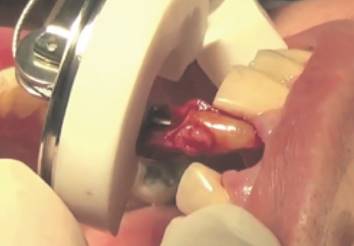 Once the surgery was finished, the patient was left with a temporary Maryland bridge to avoid compressing the surgical area.