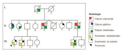 Al realizar el examen clínico-radiológico de la sujeto II.7 de 63 años de edad, no se encontraron manifestaciones maxilofaciales asociadas a PAF y la paciente no presentaba historia de pólipos intestinales. Se debe tener en cuenta que a pesar de ser un trastorno genético de herencia autosómica dominante, existe la posibilidad de un 50% de no heredar la mutación en el gen APC, causante de PAF.