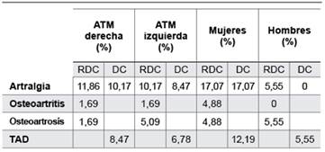 Conclusión: Hay concordancia estadísticamente significativa entre los datos obtenidos con los RDC/TMD y los DC/TMD, en el diagnóstico de trastornos articulares inflamatorios.