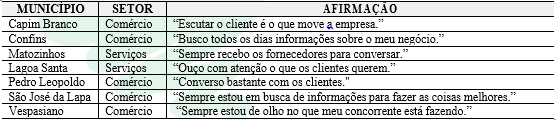 Percebe-se, na prática, que os proprietários das MPE entrevistados acreditam na forma como atendem seus clientes e atuam no mercado, mas não possuem subsídios concretos para avaliarem se, de fato, tais ações são diferenciais ou não, comparativamente ao que é feito por empresas concorrentes. Ou seja, na prática, as opiniões emitidas são pessoais e parciais, e não embasadas em informações imparciais que poderiam ser advindas das práticas de monitoramento e/ou IC, já abordadas anteriormente.