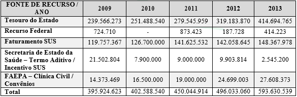 O Faturamento SUS (Faturamento SUS e Termo de Aditivo/Incentivo) correspondeu à 150.913.178 reais no ano de 2013, 25,42% do faturamento total do hospital. Ainda que não seja a maior parcela da receita total, tem um grande impacto financeiro.