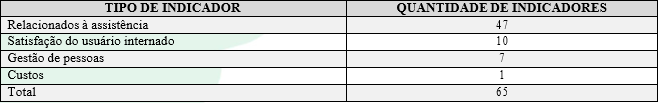O HCFMRP-USP compara com o CQH 65 indicadores, como apresentado na Tabela 7: