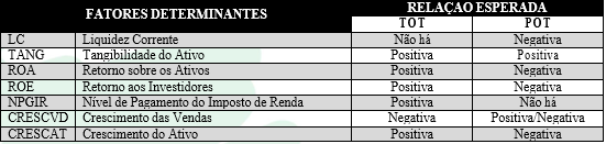 Como já foi mencionado, encontrar um discernimento teórico único para os determinantes da estrutura de capital quanto aos seus relacionamentos com o endividamento não é uma tarefa fácil.