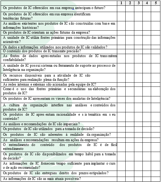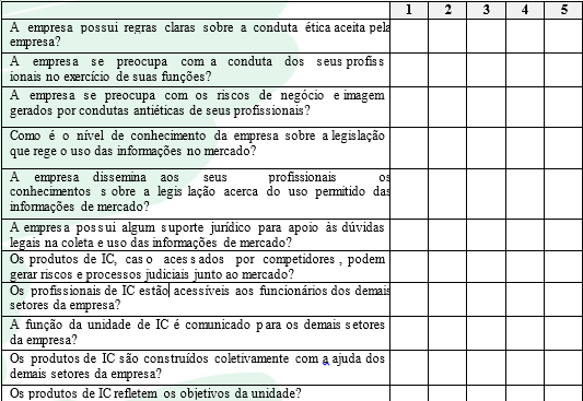 Recorda-s e que a iniciativa de s e es tudar um campo tão pouco explorado na realidade organizacional bras ileira bus que es timular a criação de um novo cabedal de conhecimentos s obre a Inteligência Competitiva no país . Es pera-s e que es tudos como es s e pos s am catalis ar a função de IC nas empres as nacionais e, as s im, torná-la uma atividade relevante para tomada de decis ões mais as s ertivas , para a redução da expos ição aos ris cos por parte das empres as e para expandir exponencialmente a competitividade do negócio.