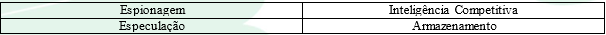 Es te artigo trabalha com a premis s a que as áreas e IC, neces s itam da Integridade e da Acionabilidade, para identificar a aplicação adequ ada dos procedimentos de ges tão da inteligência competitiva, pos s ibilitando as organizações trans itarem ou evitarem áreas s imilares , conforme quadro abaixo: