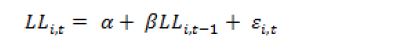 A base para mensuração do lucro é o lucro líquido ( ). A métrica utilizada, – mensuração de séries temporais – a Persistência (EQ1) (ou ausência dela) é igual aos resíduos da seguinte regressão: