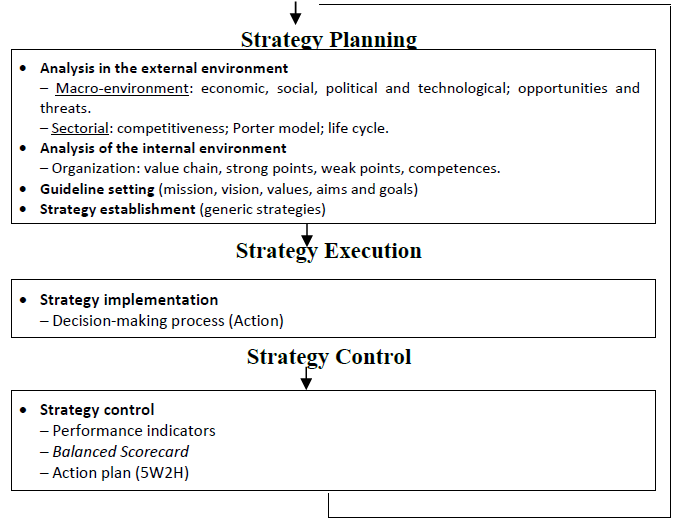 The notions of the strategic management and planning are sometimes construed as synonyms. Mintzberg (1994) defined the strategic management concept as a dynamic, systematic and cyclical process of analysis, choice, and implementation or upper management plans to achieve consistent results with the aims of the organization.