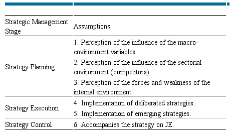 The results of this study are presented from six assumptions. They are divided into three large groups of strategic managements: planning, execution and strategy control (Table 7).