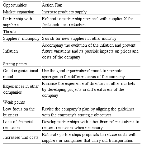 Each SWOT item has elaborated action plans. Some examples can be observed in Table 5, which was extracted from the educational material.