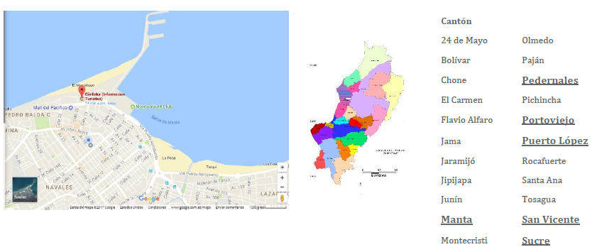 En la provincia Manabí y de acuerdo con el Ministerio de Turismo de Ecuador (MINTUR (2018) se asumen como territorios turísticos, aquellos cantones que cuentan con mayor cantidad de establecimientos y empleados en la actividad turística, lo cual se asocia a la existencia de determinados atractivos turísticos (figura 2). Manta se distingue con 37 % y 42 % respectivamente, seguido del cantón Portoviejo con 18% y 22%, Puerto López, San Vicente, Sucre y Pedernales aportan entre 11% y 6% en ambos rubros.