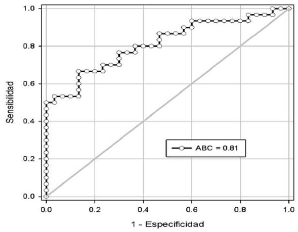 Contrario a los métodos estadísticos descriptivos y comparativos, el análisis de las curvas operador-receptor permite la estimación y verificación de la capacidad diagnóstica de diferentes parámetros de laboratorio. La curva operador-receptor suministra una alternativa a la sensibilidad y especificidad que permite la evaluación de la capacidad de la prueba para discriminar entre dos poblaciones sin importar el valor de corte seleccionado (19). Por lo tanto se utilizó este análisis para determinar la capacidad diagnóstica de la A2GRL en la práctica clínica.
