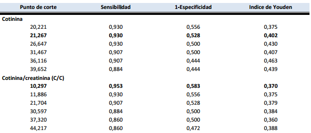 Punto de corte de la cotinina urinaria y cotinina/creatinina en niños