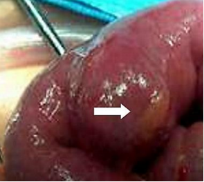 El diagnóstico de la perforación del DM representa un reto debido a su presentación clínica variable. Los síntomas más comunes son dolor abdominal, náuseas, vómitos y rectorragia indolora (más común en niños), los cuales son inespecíficos. Los estudios por imágenes pueden ser difíciles, particularmente cuando no se sospecha la causa del cuadro clínico (5). La ecografía abdominal tiene valor limitado excepto en los casos de intususcepción y la tomografía computada puede demostrar cambios inflamatorios y presencia de aire extra-luminal, lo cual puede ser similar a lo observado en otras patologías (6,7).