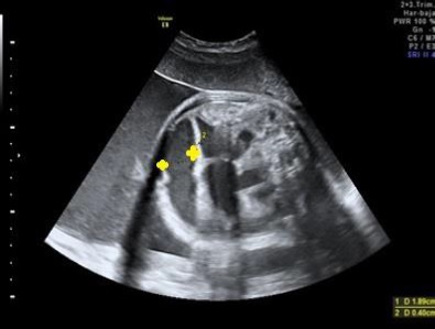 The prenatal diagnosis of congenital intestinal obstructions is possible via a fetal ultrasound scan, although this is only possible in later pregnancy and has a poor sensitivity (1-3). The expressivity of an obstruction on prenatal ultrasound depends on its location. If dilatation is greater than 7mm of the average, there is a central distribution and peristalsis is present, it suggests obstruction of the small intestine. If dilatation is greater than 20mm, it shows a peripheral distribution and peristalsis is absent, this usually corresponds to a colon obstruction. Anorectal artresias are difficult to identify (3-6). Additional signs of intestinal obstruction are hyperechogenicity (thickening) of the intestinal walls (greater than 3mm) and calcifications of the peritoneum.