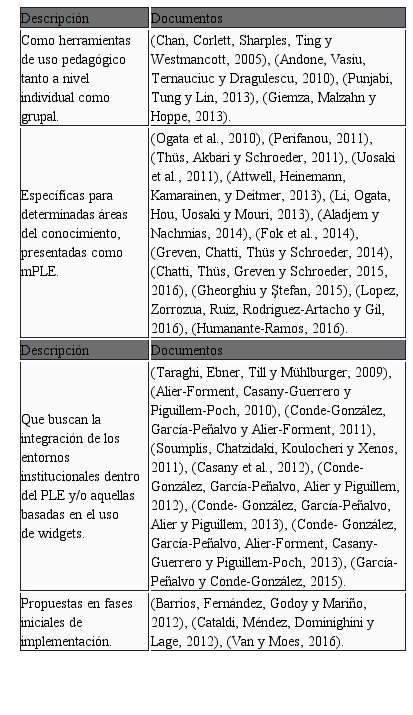 Se puede observar que existen investigaciones que estudian la incorporación de los PLE o mPLE en la Educación Superior tanto desde el punto de vista técnico, como también desde el enfoque pedagógico.