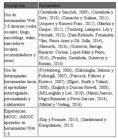 Así, en los trabajos estudiados, por un lado, se promueve el uso de herramientas web 2.0 para actividades educativas que propicien la reflexión en el aprendizaje, aunque se observa el escaso control de las instituciones en estas nuevas formas de aprender.