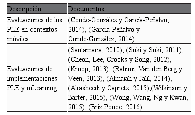 Que incluyan uno o más términos de búsqueda de acuerdo a los temas expuestos en las preguntas de investigación, con una estructura adecuada y que aporten alguna iniciativa de implementación PLE con tecnologías móviles.