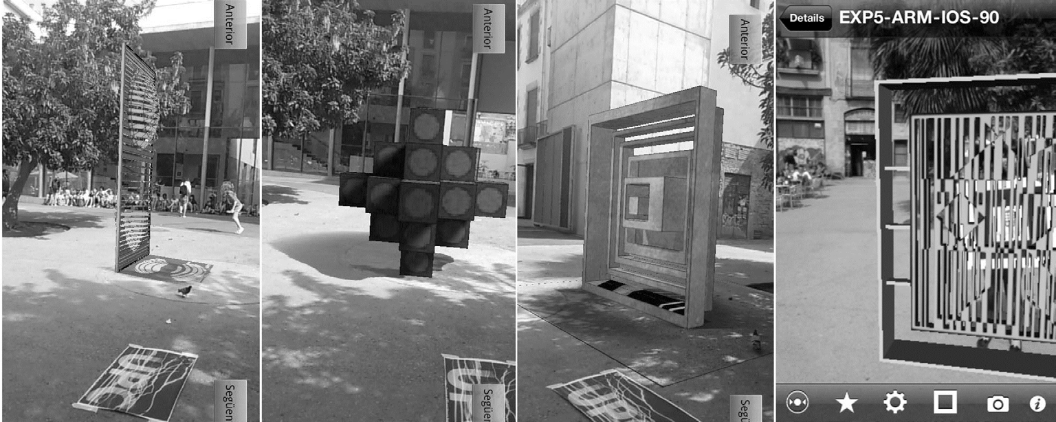In the specific case of the Android platform, the students were able to define several information channels, consisting of different 3D models associated with markers. The resulting application was capable of switching between the sculptures when a marker was recognized by the device camera.