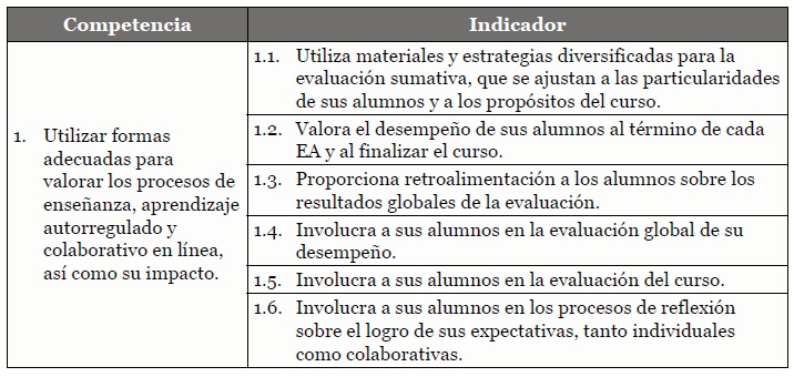 Contempla los mecanismos y estrategias para la evaluación de las metas, la acreditación de la materia, la satisfacción de las expectativas del propio profesor y de los alumnos, así como la valoración del impacto personal de la experiencia didáctica en línea.