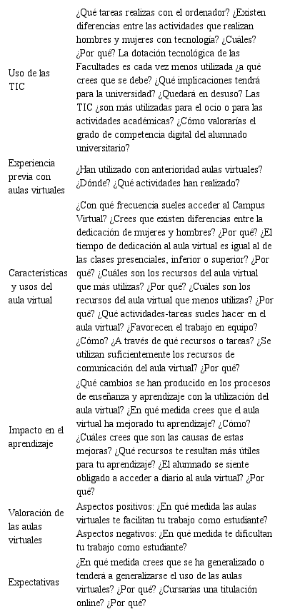 Este estudio fue diseñado con la finalidad de analizar las dimensiones pedagógicas de una muestra de aulas virtuales de apoyo a la docencia presencial así como de las perspectivas del alumnado sobre las mismas. Se trata de un estudio cualitativo de casos donde se analizaron las aulas virtuales a través de un instrumento construido ad hoc (véase el anexo 1), a modo de observación sistemática de los recursos y el desarrollo de las prácticas en las aulas virtuales (Gorad y Taylor, 2004). Este estudio fue complementado con la realización de entrevistas grupales a una muestra del alumnado que cursaba sus asignaturas a través de dichas aulas virtuales con la intención de identificar sus visiones con relación a la utilidad de dichos entornos en el proceso de aprendizaje.