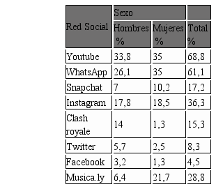 Otro resultado de interés que se extrae del estudio es que las alumnas y los alumnos utilizan por igual las redes sociales (segunda hipótesis de investigación), si bien se observa que algunas redes sociales tienen más éxito entre las chicas que entre los chicos y viceversa. De esta forma, la red social más utilizada por el alumnado encuestado es Youtube (68,8%), en la que los usuarios son tanto niñas (71,4%) como niños (66,25%). Como segunda red social a la que recurren los chicos y chicas aparece la plataforma de mensajería instantánea Whatsapp (61,1%), que la utiliza la mitad de los niños (51,25%) y casi tres cuartas partes de las niñas (71,4%). Y como tercera gran red social, dedicada a fotos y videos, se encuentra Instagram (36,6%).