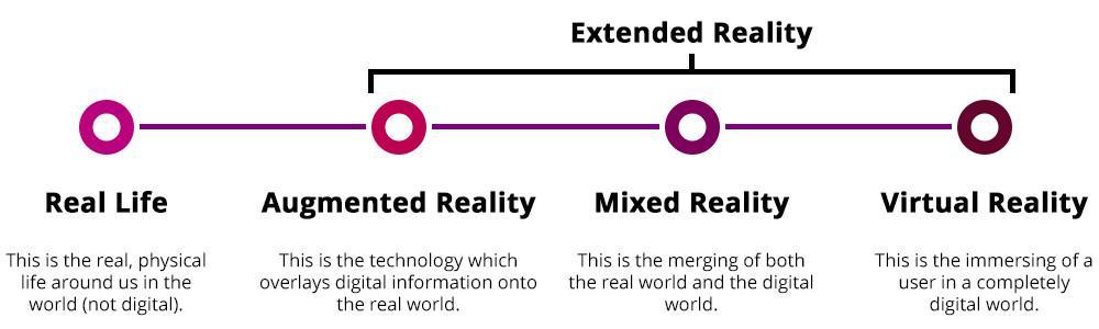 Las aplicaciones de Realidad Aumentada (RA) y de Realidad Virtual (RV) pueden ser aglutinadas bajo el concepto de Realidad Extendida (RE), tal y como plantea Simpson (2018) (figura 2) o también como Realidad Mixta (Cárdenas, Mesa y Suárez, 2018). Todas estas tecnologías combinan la realidad física de nuestro entorno real con la realidad construida por tecnologías, aunque con diferentes niveles de integración y de conexión de una y otra.