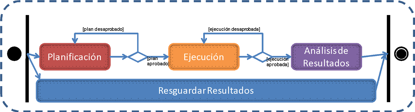 La metodología utilizada para realizar el análisis del estado del arte es el denominado proceso de revisión sistemática de la literatura (RSL), basado en la propuesta de Kitchenham y Charters (2007) y, particularmente, la adaptación hecha por Biolchini et al. (2005). Según los autores una revisión sistemática es una metodología para realizar una investigación, que permite recopilar y evaluar la evidencia disponible sobre un tema en particular. A diferencia con el proceso habitual de revisión, en este caso, existen pasos definidos y estrictos que deben respetarse para poder llevar a cabo el proceso. En la figura 1 pueden identificarse las etapas propuestas para desarrollar el proceso de RSL: planificación, ejecución y análisis de resultados. La cuarta etapa resguarda los resultados obtenidos en las etapas de planificación, ejecución y análisis de los resultados; por lo cual se realiza durante todo el proceso.