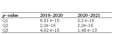 Una vez determinada la no normalidad de las series de datos, se aplica el test de Wilcoxon para comprobar si hay relación. Se utilizarán los valores de alfa menores que 0,01 y 0,05 para comprobar si hay diferencias significativas (Tabla 5).