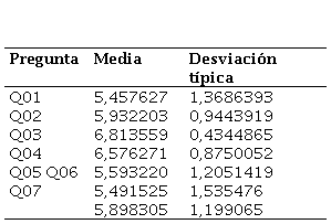 La herramienta de medición (Aladwani y Palvia, 2002) está compuesta de un cuestionario de 9 preguntas de tipo Likert con una escala de 7. Se han seleccionado las siguientes 7 preguntas del citado cuestionario.