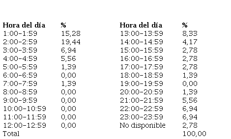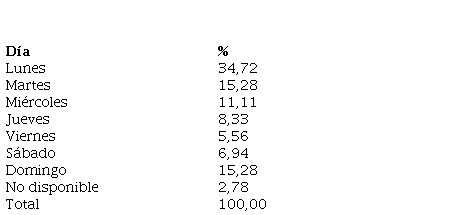 Por otra parte, el análisis de la actividad digital de los participantes se realizó en función del día de la semana y las horas del día en que se produjeron los tuits (Tablas 11 y 12). Esta relación revelaría asuntos como la gestión del tiempo de estudio y de desarrollo de actividades de aprendizaje orientadas a la apropiación conceptual.