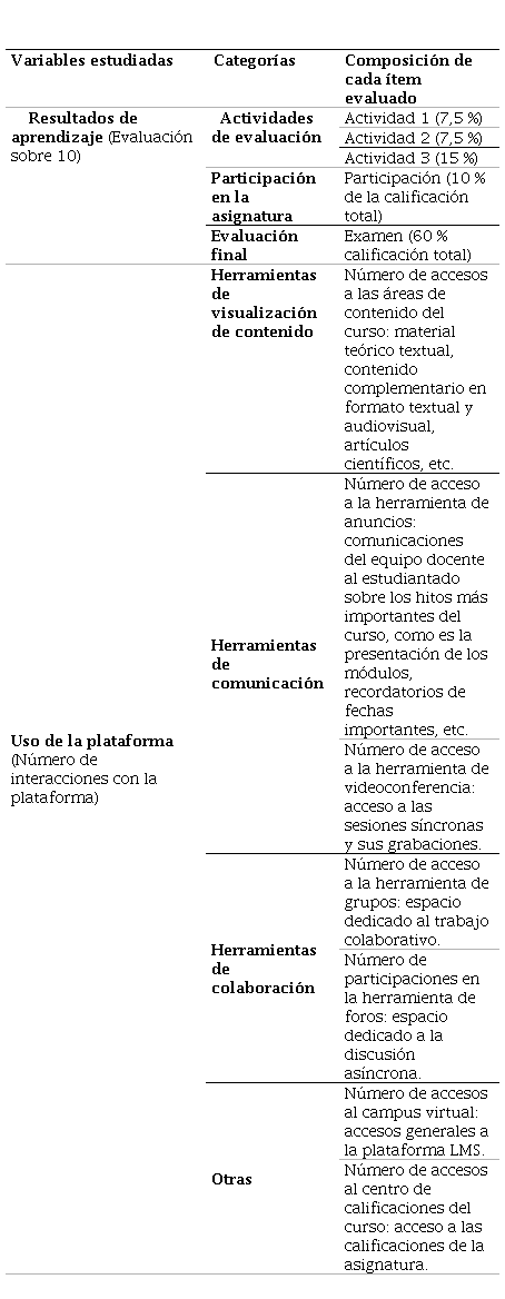 Para el bloque de variables que corresponden al “Uso de la plataforma” por parte del estudiantado, se detectan notables diferencias en función de la herramienta concreta que se analice. Mientras el número de participaciones en los tableros de discusión habilitados en la asignatura, los accesos a la sección de anuncios (comunicaciones importantes para los estudiantes), las visitas a las sesiones de videoconferencia (o sus grabaciones) y las entradas a los espacios de trabajo compartidos se mantienen sin diferencias entre ambos grupos, el número de accesos tanto al campus virtual, como al área de contenidos de la asignatura y a la de calificaciones es significativamente mayor en el grupo experimental.