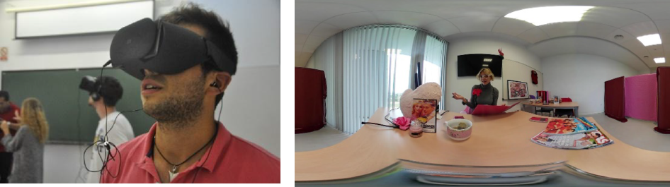 Con el propósito de explorar las posibilidades de crear entornos inmersivos mediante el uso de videos de 360º y la implementación de un chatbot, se crea Let’s date! una app de RV. El uso de un chatbot nos permitió, además, proporcionar al estudiante nuevas oportunidades para una inmersión lingüística y una interacción casi real en lengua meta, aunque ello no pueda reemplazar completamente a la interacción entre humanos. En nuestro diseño Let’s date! se recreó, por medio de varias grabaciones esféricas, un escenario (una agencia de citas) que proporciona a los estudiantes la oportunidad de sumergirse en “un mundo real” interactuando con “personas reales” (un empleado de una agencia de citas). Let’s date! fue desarrollado usando Visual Environment for Designing Interactive Learning Scenarios (VEDILS), una herramienta de desarrollo que, aunque diseñada para no informáticos (Baena-Pérez et al., 2022), requiere conocimientos básicos de programación.