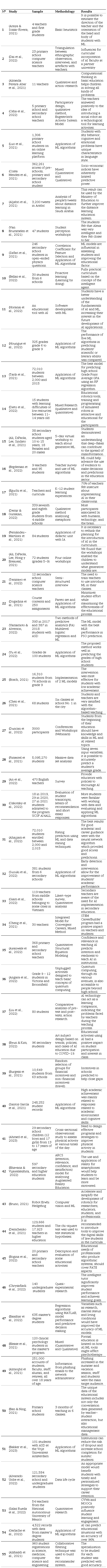 Finally, it is hoped that this research will contribute to the knowledge and understanding of educational practices with ML and AI and how these can be implemented to strengthen teaching-learning and educational management processes in all types of contexts.