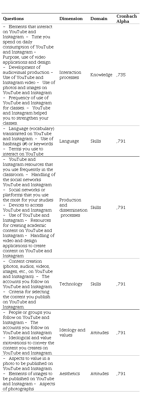 Therefore, this study aims to identify and integrate the dimensions of media competencies in skills, attitudes, and knowledge that professors should have to manage the teaching-learning process in the YouTube and Instagram social network.