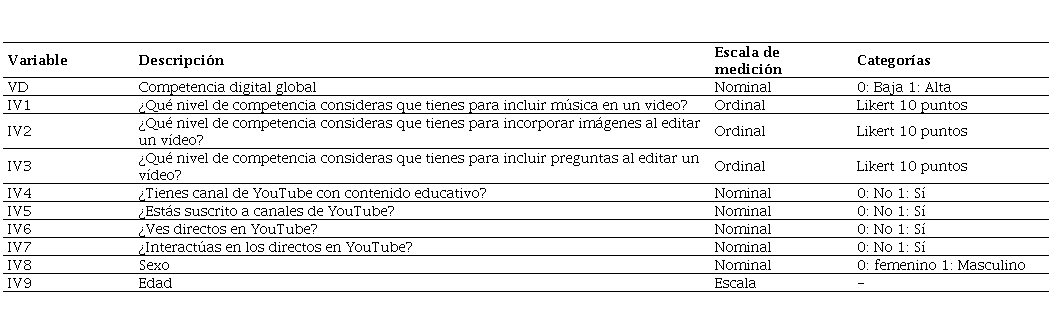 Para abordar el tercer objetivo, se han determinado las variables que afectan a la competencia digital de cada grupo en el uso educativo de YouTube mediante diferentes regresiones lineales múltiples. Cada regresión se estimó mediante el método de mínimos cuadrados ordinarios, utilizando el enfoque de selección hacia adelante. Las diversas variables examinadas se detallaron en la Tabla 5.