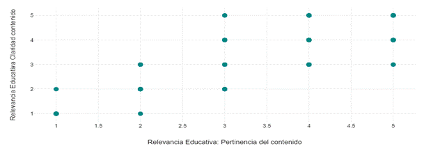 The correlation between educational relevance and content clarity is 0.91, indicating a strong positive relationship between the two variables and statistical significance. KAPs consider narratives as relevant and appropriate and also tend to perceive them as clear and coherent. KAPs, referring to A01 and A11, show this consistent and favorable relationship. In contrast, groups A15 and A17 have lower scores on both variables, indicating more significant variability in views of clarity and relevance, as indicated in Figure 2.