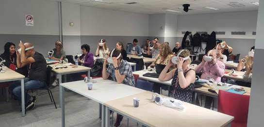 Phase 3: Teacher training in the three centres participating in the use of VR. Once the four VR lessons had been developed, several teachers from the three participating Secondary Education centres attended a week-long training workshop (Figure 2) organized by the university of the research team. The purpose was to familiarize themselves with the equipment and learn how to use it in experiments with pupils (safe distance between students, IT requirements in the classroom, incompatibility of the technology with certain health issues, etc.).