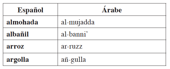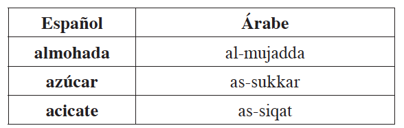 Hay que mencionar que el artículo /al/ aparece sobre todo en palabras incorporadas durante la primera época de la dominación árabe, siendo su vía de ingreso el habla popular- oral, luego la mayoría de los vocablos no presentan artículo ya que ingresaron a través del habla culta como elementos del léxico independientes. Aunque gran parte de los arabismos presentes hoy en la lengua española comienzan con /al/ por la presencia del artículo, ese no es un rasgo distintivo únicamente de las palabras de origen árabe.